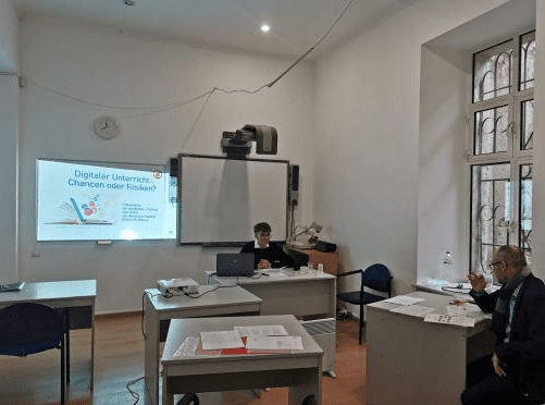 Испытания проходили в смешанном формате: несколько членов экзаменационной комиссии во главе с координатором-консультантом программы Центрального управления школьного образования за границей (ZfA) для юга Украины находились в кабинетах, другие подключились к экзамену в режиме онлайн.