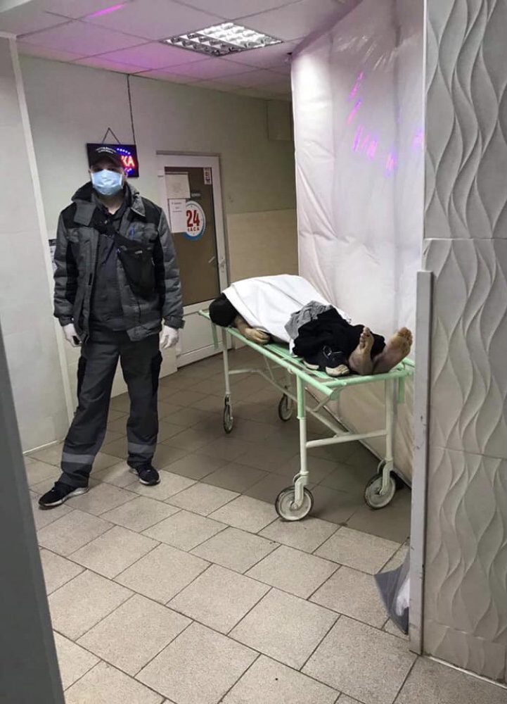 Фельдшеры, которые работают в больнице сообщают, что во время госпитализации больных в медучреждение они видели, как накрывают тела умерших одеялом и оставляют лежать в коридорах и палатах.
