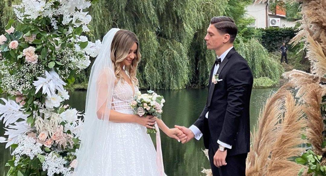 Якщо в РАГС Анжеліка прийшла в діловому костюмі, то ось до вибору наряду на церемонію одруження підійшла більш серйозно. Дівчина ділилася, що підготовка до весілля виявилась складнішою, ніж до Олімпійських ігор. Перед гостями вона постала у розкішній білій сукні з розрізом, а її ноги прикрашали бежеві туфлі. Під час святкування пара станцювала танець, а пізніше відбувся традиційний конкурс із букетом.